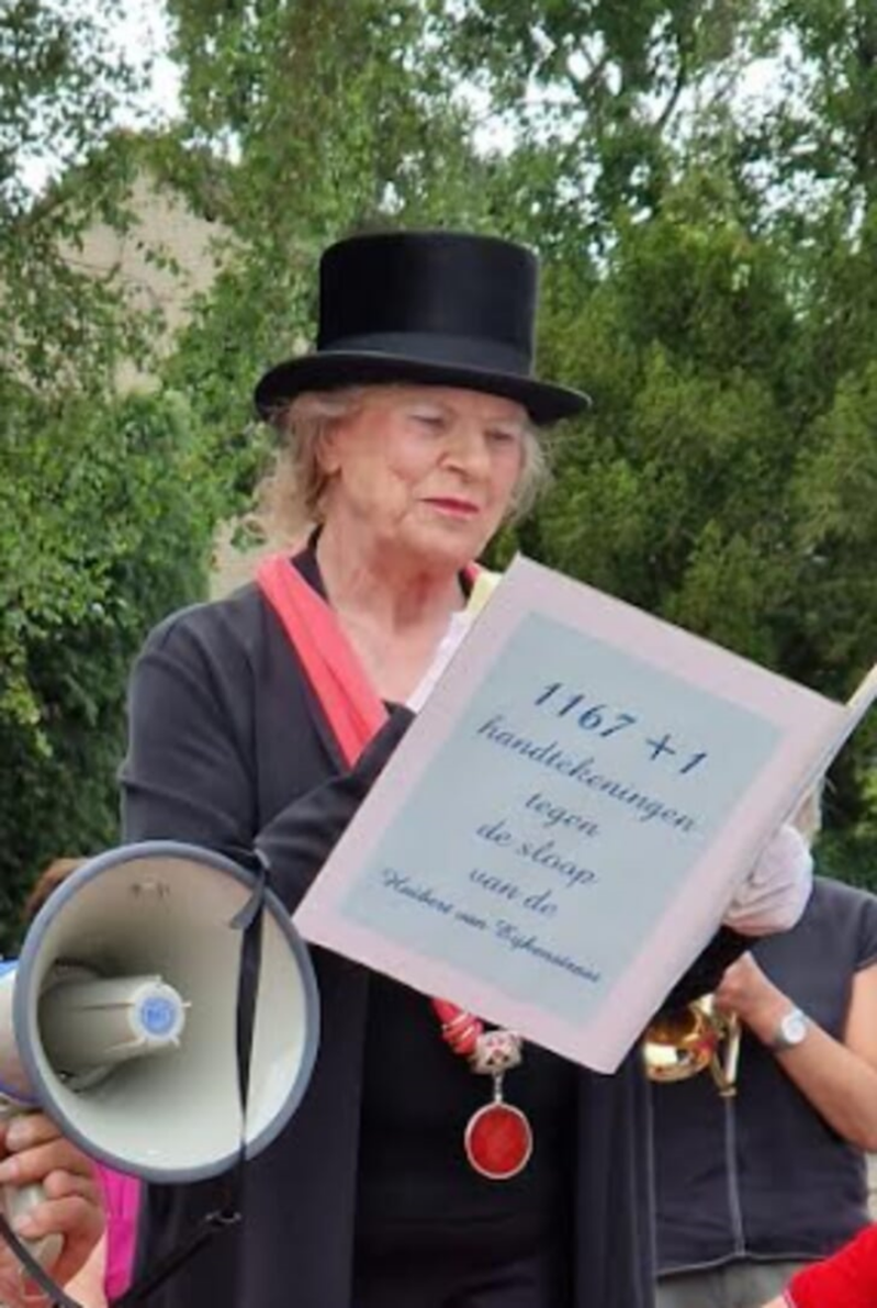 Hun stem is was luid, maar duidelijk: “Er was veel publiek dat veel lawaai maakte met instrumenten, pannen en potten.” De speerpunten uit de toespraak die de meeste - naar eigen zeggen - herrie veroorzaakten, luidden als volgt: “Het is vandaag 14 juli, Le Quatorze Juillet in Frankrijk. Tijdens dit grote volksfeest vieren de Fransen de bestorming van de Bastille, dat het begin inluidde van de Franse Revolutie. Wij bestormen vandaag het hart van de Woning StichtingNaarden met de handtekeningen van een petitie tegen de sloop van de Huibert van Eijkenstraat.